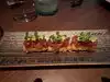 Some of the freshest sushi and fish we've had anywhere. We had beet salads. My wife ordered the grilled salmon,kt was incredible! I ordered the Salmon truffle and the Kanpach carpacc and one bottle of Kiminoi sake which was delicious. We both had Miso ice cream for desert. Our waitress Alexandria was great, she really knew the menu.