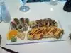 We had Sushi and Sashimi. 5 orders of special Sushi and 1 medium Sashimi Chef selection. Quality and taste were great. The “faty” Tuna sashimi was amazing! 2 of our re-orders came very late (very busy) and the waiter was very professional to have them on the house as compensation. In short: good quality for price. And great selection.