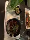 Wow! The udon noddles were brilliant so delicious! The pork ramen was incredible, the noodles just so tasty, so well cocked. The mushroom dumplings were so amazing, we haven’t had this dumplings before and it was so delicious, remind us a bit of Ravioli. The Gyoza, just amazing.. I really love the way it served, very tasty! The pork belly just unbelievable, just make the perfect bite with the caramelized onion, spicy mayo inside the lettuce, just epic. About the sushi, it was tasty. The restaurant absolutely surprised us so much, we haven’t expected for such an amazing food. So creative. I would definitely recommend. Also, the atmosphere is great and the prices are much cheaper than I thought. Great place to have a delicious Asian dinner.