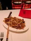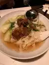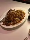 I went with a friend that had been before so, I was unaware. The check in felt pretentious and 'Vegas-like' We got a fantastic table and the server had a great sense of life. we started with the Roland Lavantureux, Petit Chablis. Great wine for the meal. The Beef Brisket Noodle soup was so flavorful, tender beef with perfect noodles. Crispy Pork was served with Hot Mustard and Grey Salt, a fantastic dipping blend. the Pan-Fried Prawn and Chive Dumplings were an extra treat that helped the wine get finished. A great treat at 9pm and not too expensive in Vegas