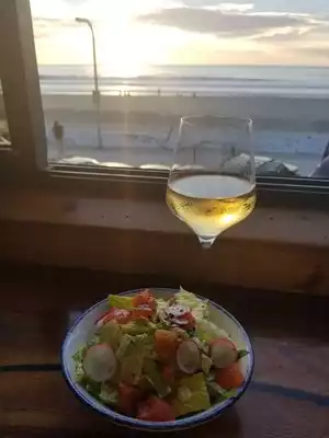 Great Louis salad with a glass of French rose. Service excellent and great view of the beach. Good variety cocktails