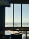 Our friend, who lives in the area, brought us here for lunch. The view is beautiful, right over the beach. The food was great, yet quite pricey (guess you're paying for the view?!) and our waitress was very friendly. It's a modern clean space and I'm sure it's even better when the weather allows them to open up the windows.