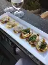 Had a glass of wine and prosciutto dates with blood orange balsamic! Great small outside deck ( w heaters!) with a view of the water! We will go back.