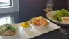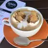 The place has a restaurant with "proper" lunch and dinner but also a small bakery on the side where you can have a variety of freshly baked goods. I had a fat free cappuccino and a delicious scone. Service was very nice and prompt. Highly recommendable!