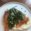 Cute modern place for brunch. All the waiters wore floral button up shirts which I though was a cool idea. There’s a fresh bakery shop in the corner that you can get pastries to-go. We ate there and requested for a patio table since the weather was nice. We ordered the s’mores latte which was delicious and not too sweet. For brunch, we had the salmon with truffle eggs and the French toast. Both were good dishes and reasonably priced ($18 and $16). Would definitely come again. We made reservations on OpenTable ahead of time.