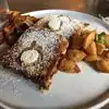 I was a bit skeptical because the place looked a bit like a hotel cafeteria to me at first. I was wrong. The French toast with chicken was great, but I expected that. What I didn't expect was that the Birria pizza would be so amazing: packed with meat and mozzarella and served with consommé. The portions are also very big. Frankly, just the pizza or the French toast would be enough for the two of us, but I'm happy we tried both. The coffee was surprisingly good too. I'd expected something smoky, but it was very fruity—another nice surprise.