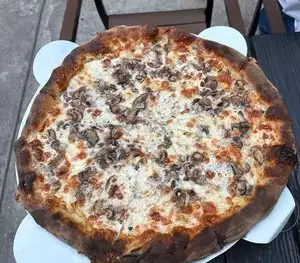 I ordered a Bensonhurst Pie and it looked good but it changed to amazing after first bite. The staff was friendly and nice to chat with. My next visit is the Calzone I tasted There oven is 700 screeching degrees. Crust is light and tasty. I’ll be back. It’s a quaint restaurant with an outdoor area and a nice bar. Brooklyn atmosphere at its best.