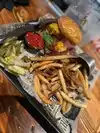 Stopped in while touring Fremont street. Very pleasant surprise. The plate presentation was outstanding. I had a burger and fries, the fries come in a little offset can that is set to look like it tipped over and spilled on the plate. My first thought was to pick one up. Once you touch them, salty goodness. Cold beer, beautiful hamburger, well seasoned fries. Prompt attentive service. I would recommend. The kitchen has glass walls so you can see it is clean as you enter the restaurant, I appreciate that. I poked my head in to complement the chef on the plating. I felt the plating compelled me to pick up the fries.