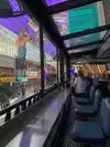 Fun experience at the rotating bar. Great lookout spot over the Freemont Street experience. Our bartender was great, regularly checking up on us if we needed anything else. We ordered a couple of burgers, a Pizza and some Chicken Tenders. All the food was delicious and would definitely eat here again. Be aware, if you are drinking spirits the pours are LARGE. There was a lady next to us who had clearly had too many so the bartender quite rightly cut her off. He did this in an extremely professional manner and dealt with her rudeness very discreetly which unless I would have been sat right next to her, I would have never noticed him dealing with it. Props to him.