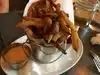 Saw this restaurant on a walk back to the hotel. I’m so glad I did it was terrific. The inside is really interesting. I didn’t get to walk around enough to see everything. The food was great and service was good. The room I was in you could have a conversation with out an issue. The bar looked great but packed when I left.