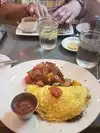 We loved this place! Food was delicious and we enjoyed the choices on the menu. We had lunch here and had a limited amount of time and our waitress was kind enough to point us to menu items that would be ready quickly and she made sure we got our bill and finished in time. Great, fun atmosphere /decor.