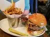 My friend had a burger and liked it but I did not order it as it was described as a double burger. Unclear why. It was big but not two patties. Her french fries were very good. The Caesar salad was the worst on the planet hands down. Little to no dressing. Great big pieces of Romaine that one had to cut to eat. And burnt one quarter chicken breast for an extra upcharge over the 20 cents worth of romaine. $20 total. blech.