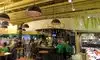 several different islands to get food. Salad bar with lots of variety, hot food, cold plates, and desserts. So much to choose from. Grab your food, pay and sit to eat inside or outside. Tables are close together with shoppers walking next to you. Shopping is good here. Locally grown fresh flowers, fruits and veggy varieties. Spices, lentils, and rices by the ounce. Hand made soaps and bath products. Hard to find teas, coffees, and just about anything you can imagine. Fresh baked bread and desserts. All that we bought was reasonably priced and worth the cost. Free parking garage for shoppers. We will definitely go back.
