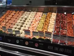 Expensive, but if you're walking around downtown Seattle this is a special place to organize a meal - breakfast, lunch, or dinner. It's a mega grocery store with multi self-serve options. Even offers outdoor seating. If you head to the meat and fish counters in the rear, they can prepare a fresh meal for you on-site. Only $2 charge for the prep. There's also an Asian takeaway, deli, hot meals to order, a sandwich counter, salad bar, and a sort of brewery. Plus hundreds of standard supermarket shopping opportunities. Free underground parking. and it's on the Lake Union streetcar route. Amazon has a lot of office space in the neighborhood, So it's mighty busy at lunch hour. If you take away a load, be sure to double bag. This is one place that Whole Foods falls flat; their bags tear easily. And in Seattle you pay a fee for this!