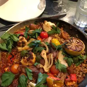 Wow this place was as good as the other location in Palo Alto. Easy to get to location. Warm and inviting seating are and a decent size bar. We enjoyed the roasted carrots, Brussels sprouts, neatball masala, followed by the warm chocolate chip cookie with scoop of ice cream. Hard to believe it was all vegetarian and no dairy. Just delicious!
