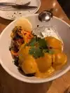 I went will a team from work. One of us is strictly vegan and all are willing to eat vegan. The menu is interesting and fun. The place is very appealing inside. The staff very friendly. Everyone was delighted with what they had. We share the Green Forest flatbread as an appetizer on recommendation of our service. It was great. I and one of my colleagues had the Spicy yellow curry with forbidden rice. How could I resist ordering something forbidden. The curry was not that spicy, but delicious with very well balanced flavors. Forbidden rice turned out to be black rice which I have had before and always enjoy. A few folks had impossible burgers and one had a Wildseed burger. Our true vegan had the Neatball Masala and enjoyed it alot. I was to tired for a cocktail, but others all enjoyed theirs.