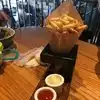 The restaurant is busy, when I say that I mean, it’s THE place to be in San Fran! If you haven’t booked you go on a walk in list. We waited in the bar for our ‘two hours table trying to get a drink, it’s SO busy, and quite deservedly.....!! We stood there for about twenty mins then a couple stood to leave and offered their table - rizzult! It was plan sailing from there on in.... Hubby chose an IPA of some sort, said it was lovely! Hazy type...? I had the Aloe G&T being a Brit! Delish! Wow.....I almost swigged it down in two! The frozen lemon slices, great touch! Our server was a lovely kind chap, bearded and very helpful, in fact all of the staff we encountered were very professional and friendly. Hubby, who doesn’t eat veggies yet is Vegan, ( go figure!) chose the yellow curry. He ate the lot and said he would eat it for breakfast! We also shared Belga fries....the dips were incredible....the aioli...to die for, but nothing did!!! Our server recommended the flat bread....well, the flatbread was like nothing I’d ever eaten before since choosing my plant based lifestyle!!... the ‘cheese’ was amazing.....honestly haven’t eaten this well in a while. Anyway, you win!! You beat me, I’m currently sitting here eating it for breakfast 😂 No wonder you can’t get in this restaurant.....