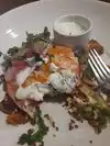 Totally love breakfast and brunch here. They have a decent amount of parking and access into the building on many sides. The food is very good but not always consistent in quality. Wait staff could use more training as they don't seem to know their products or have much in the way of suggestions. It's loud in here even when the place isn't full.