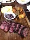 Three of us dined here in a Friday evening. We had to make a reservation the day before to assure seating at our preferred time. We’ve been denied before so plan ahead. The decor and service is very nice. The staff is well versed on the menu and enthusiastic about the various dishes. The cocktail selection is varied and fun. We ordered a variety of dishes, as this is a “shared plate” styled dining establishment. I’m not a fan of the shared plate style as the sizes of plates can be a little small to actually “share”, the mixed seafood for example. And though the listing here and their menu list “gluten free” options, they do not have GF bread or pizza. That’s my personal metric to advertise a GF menu. One other thing, I found it odd that we were asked to make our order entirely so that their “two” kitchens could coordinate, yet the plates came out one at a time, curious. But the quality of the food was great, and the staff enthusiastic about the food. The steak platter was especially tasty. It’s worthy of a visit, especially if you like the shared plate trend. But plan in advance, it is popular.