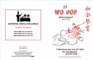 My dad would always tell me about his expirence when he went to wo hop at least a couple times a month. So i decided to try for myself. I couldn't belive it was real it was the best chinese food i ever had and coming from a jewish comunity we eat chinese food on the regular. But this shop was different somthing different i tell you.