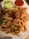 This is our go-to spot every time we visit LV. We get the My Vegas rewards discount which helps us order more. On thus visit, we git the prime burger which was large, and the hand cut fettuccine with mushrooms. The fried calamari had veggies tempura style. Service was spot on. Had music and tv to watch sports, so everything there to accommodate everyone. Go early and make reservations. Wait can be long during dinner