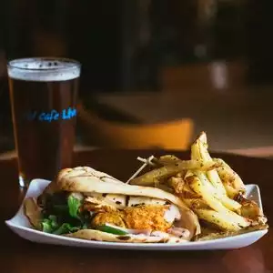 A convenient place to get a quick bite before enjoying the almost nightly array of entainment poerformances. Very basic menu with a few starters, mains and desserets. Jumbo shrimp are really JUMBO. Burger and poulled pork most common mains. Lava cake is a fantastic dessert. Service very friendly and fast.