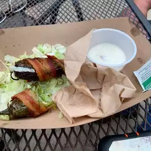 A nice Sunday to try a new place we saw from ElderEats. The stuffed jalapeños got me and thats what we wanted to try. There was plenty of seating outside. They have some tables inside, but its pretty small. Outside is fine and you get some shading from the large trees. The food was good; we liked the Cubano sandwich and the stuffed jalapeños, the taco and wrap were fine. We'll go back and try other menu items next time.