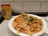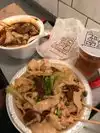 The menu is on the wall as you walk in; go to the cashier and tell him what you'd like. Folks in front of us had questions about the menu, and they were helped patiently and with lots of information. Don't forget to buy your drinks when you order your food. The signs are clear; it won't taste as good "to go," so eat in. After you've paid, you'll get a ticket with a number. Then line up to wait for your food (sending someone in your party to grab a stool to sit on). There's also extra seating upstairs. Hold on to your receipt - it has the code that allows you to enter the restroom! The "normal" spiciness was pretty spicy, so if you're not sure you can enjoy that, go for "mild." Also, the noodles are long and difficult to cut and covered in sauce of one type or another -- all of which is to say, don't wear a white shirt! Or be a lot more careful (less sloppy) than I was! Delicious fast food.