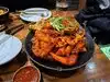 We made a reservation for two people at 3:30 on a Sunday. It was busy. The staff were friendly and the restaurant was clean, including the restrooms. They served about six small dishes as a service. The kalbi was very tender and delicious. We also ordered seafood tteokbokki and bibimbap, but the portions were so large that there were about three servings each, and unfortunately we couldn't finish it all.