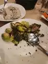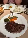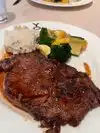 Excellent meat, perfectly cooked, the accompaniment being a little light, I completed it with fries a little soft, but acceptable. The price is expensive: for a nice piece of meat, ribeye steak, a glass of wine and fries, if you count tax and tip: $100...