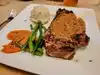 One of the questions trip adviser almost always ask me is, can a vegan get a good meal here? The answer is an emphatic yes! On the menu are two different vegan options. I tried the vegan meatloaf. I had a bunch of other people taste it. No one could believe that it was not meat!!! It was moist, full of flavor, the texture seemed like real meat. They serve great salad la and soup options as well. Nice priced wine by the cup menu. You can read about all the meat options in other reviews. I want to make sure that you think about this restaurant to surprise any vegetarians or vegans you know. They will love you. Thank you management!