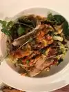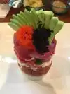 A little gem located in the Pearl district! I ordered my 2 favorite items whenever I see them on the menu. Salmon Skin Salad and Chirashi. I start with Salad, which I thought would be a starter size, ended up a large entree salad (not a problem). The Chirashi as you can see was tailored a bit for me with no shell fish, the flavors and freshness was out of this world. Service and overall ambiance in the restaurant was top notch!