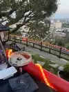 We got there when they opened to be sure we caught the sunset over the city. The grounds are beautiful. We also had some beautiful drinks. The food was great. I asked them to turn the music down and they did. Our waiter was attentive and not intrusive. It was a lovely evening in an incredible setting