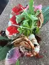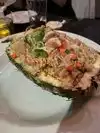 A single lane winding road takes you up a hilltop whereupon Yamashiro sits. Very cool view, great interior design. We ordered the "Small Boat" of Chef’s selection of 8 piece sashimi, 12-piece nigiri, 2 rolls. See the pic. Very nicely presented! But very so-so quality and flavor. The sashimi was the best quality and flavor. Not much to rave or complain about. Visit for the view.