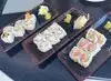 Restaurant attracts tourists. My son's dish arrived in 5 minutes, before ours, he ate on his own. We asked for the chef's choice small boat at 200 dollars, crap! Really low end food. The boat was served and my husband had to get the plates and chopsticks from the table next to it. Realy bad service too.