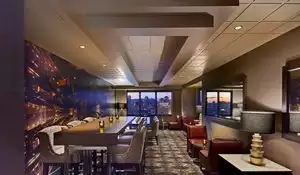 This is a hotel so it is fairly noisy and table service is not always quick. The range of beers is extensive and the food is excellent. I tried the Nashville Hot Chicken with Sweet Potato pancakes and it was very good. Everyone who ordered steak was also very happy.