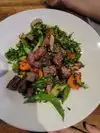 First time eating here and food was GOOD, server did her best but it missed the “very good” mark. I enjoyed the vegan burger very much - super hearty and tasty! It came with a very nice garden salad but here’s where things fell apart - the dressing! The server said they had an Spicey Orange vinaigrette but it was a spicey side of olive oil! I figured it was a mistake so sent it back and she came back with the same thing. It ruined my salad. Mgr said it’s what they use on their Quinoa salad, not lettuce salads. Wish my server had understood that. No offer to make anything right (new salad without spicey olive oil all over it would’ve been nice.) My friend had a yummy sangria and 3 apps for dinner. The buffalo chicken was too spicey too be edible but she enjoyed the buffalo cauliflower and the ahi tuna. All that said, I really appreciate that their extensive menu is so vegan friendly!