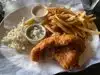 Fish and chips were dry, as if the entire plate had been reheated in the microwave. That may have also explained why the look and texture of the sauce was, well, a bit disturbing. Salad came without the dressing and took what seemed like an inordinately long time for the server to bring it after we asked. Server was nice however, and agreed when I asked that the nasty fish and chips be deleted from the bill. There's a nice outdoor patio, and other food in our party was good, but I'll eat elsewhere next time.