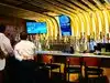 Classic "sports bar" near Times Square, large, well furnished, soft lights and large display of TV screens with baseball and football blaring (obviously). You eat on sofas or (as we did) on stools. Great choice of beers, we ordered nachos (exceptional but portion for 4 people) plus burgers and tacos (more normal portions, the chips are notable). Efficient service, good food (Americans should be left alone on their matters), prices a little high but in that area you just have to put up with it.