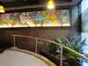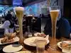 Large sports bar / restaurant: we were given a nice booth table and menus and orders were taken quickly. Had a Korean beef taco and chicken tenders: taco was tiny but there were six tenders plus fries, so managed to eat everything! With two beers and a Diet Coke the bill was about $50 before tip, paid via a screen on the table. Very good service from a regular plus a trainee.