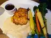 Restaurant has very dark decor, took a while for eyes to adjust, however once we could see properly we were impressed with menu! Loads of choices to suit most tastes. I had porcini crusted halibut with asparagus and pak choi, in a porcini cream sauce with Parmesan mash. Delicious. Service was good, all staff were friendly and helpful. Prices reasonable too. If you enjoy beer, there are so many to choose from! Hubby had a pint of Moose Drool brown ale, purely because he liked the name. Would recommend if you’re after good food and have good eyesight!