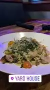 It is a nice gorgeous evening out and I am hungry for shrimp pasta... I have walked around practically all over the city. I have never been at any of the Yard House locations before... Upon walking in a very busy joint I get greeted by a friendly hostess. I asked to sit at a booth she said it may be awhile, but to my astonishment she went ahead and had me seated right away... this joint was fairly dim lit, and it had many big screen TV's. Tonight there is a Seattle Seahawks game which I watched in its entirety... I wish John could of been able to join me. I was greeted by a friendly waiter & I ordered a Cherry Coke and Shrimp Pasta it was delicious!!! The waiter had a couple of mishaps with my order, but was he was able to fix it within both times... The ambiance is loud and many people were drinking at bar area. I highly recommend this place to get together and watch a game...