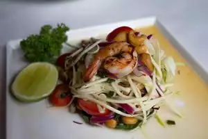 My wife and I went after theater on Friday. We both had the shrimp with green curry. We also had a papaya salad and cocktails. It was a very good meal and very reasonably priced. The cocktails, which were delicious, were only $8 each.