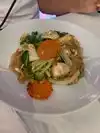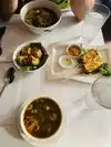 The three of us had the prixe fixed lunch . I had a tasty noodle chicken dish, served with a nice green salad with a tasty peanut dressing, tofu vegetable soup and coconut ice cream for dessert. The entree was enough for two; I had the rest the next day. What I liked most about the food was the fact that it was NOT salty and I did not come home having to drink gallons of water. The restaurant was small, somewhat crowded, but comfortable.