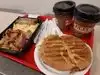 A good family breakfast that has satisfied two teenage boys and well as their parents! The queue went fast and service was also quick. The no-nonsense staff is efficient, but try and order all in one go, when you have their attention! Despite this being a large place the room is not as noisy as other diners we’ve visited. We would definitely come back. I had waffles with fried eggs and sausages, and was very happy. The real maple syrup instead of the fake stuff at 1.75$ per small jar (1.6 oz, see photo) is hideously expensive. The chocolate chip pancakes with bananas were a hit. The fried chicken and waffles also appreciated although it was noted that the chicken could have been more flavorful. My guys totally loved the cinnamon bun. I found it too sticky and with far too much cinnamon.