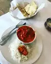 I order the goat curry with comes with naan (Bread). The food was delicious only wish there morw qas served. Will definitely come back to order something else.