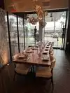 From minute I arrived was told “No”…. Could not go sit at bar to get a drink as I was a bit early, could not order a drink while standing with 20 people also being told “no”, and could not be seated at our table when time for reservation arrived because not all in party had arrived. The atmosphere so loud could not hear the waitress two feet away. While the food was decent, they confused shredded lamb on pasta for the Osso bucco that I ordered. They tried to make it right by comping my pasta but experience was less than stellar. Perhaps after enough people get tired of being told “no” it will improve—but by then the “trendy people” will have moved on to the next newish restaurant. Beautiful restaurant but too crowded and noisy.