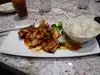 The food was good. The chicken wasn't chicken breast (I much prefer chicken breast to any other kind) but it was good. We ordered 2 appetizers each and my husband had 2 drinks and I had 1. The drinks were really good too. The waiter was very good and the other staff was as well. We would go back again.