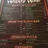 The happy hour specials were the bomb. We had the 777 and Spicy Tuna Roll with our cocktails, your place was busy but the service was prompt and your staff were very nice. Friendly customers in a cheerful mood due to March Madness and St Patty's day celebrations added to our experience there at Zen.