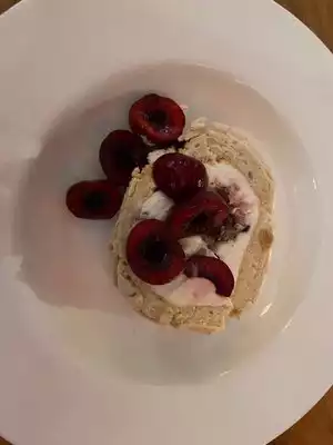 Zimmi's was the second new French West Village restaurant I tried during this visit to NYC, the other was Le Chene. It opened in December last year. It's a petite corner spot with a decent-sized menu which seems to change fairly often and is certainly more upscale than tradition French bistro fare. I ordered 4 dishes: 1) Legumes frits. Fresh veggies fried in a light and crispy tempura-like batter served with an anchovy-based aioli. 2) Soupe de celeri. Chilled celery soup, creamy but non-dairy, topped with creme fraiche. 3) Poulet printanier. Chicken with spring vegetables and lettuce. 4) Brown sugar meringue roulade with cherries and almond. I loved everything. The soup was perhaps the most traditional dish, and my least favourite, but still very good. If I lived nearby and had a large dining-out budget, I'd be here weekly.